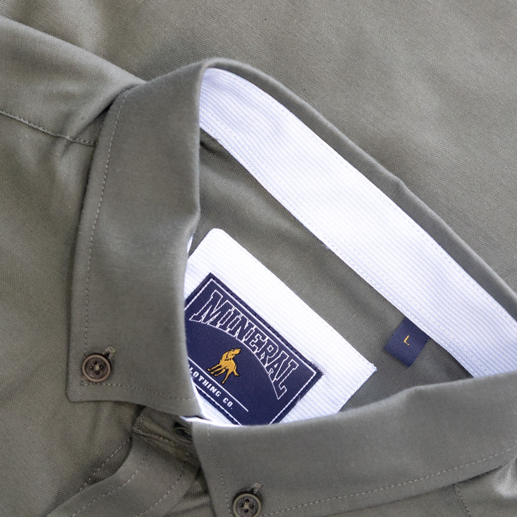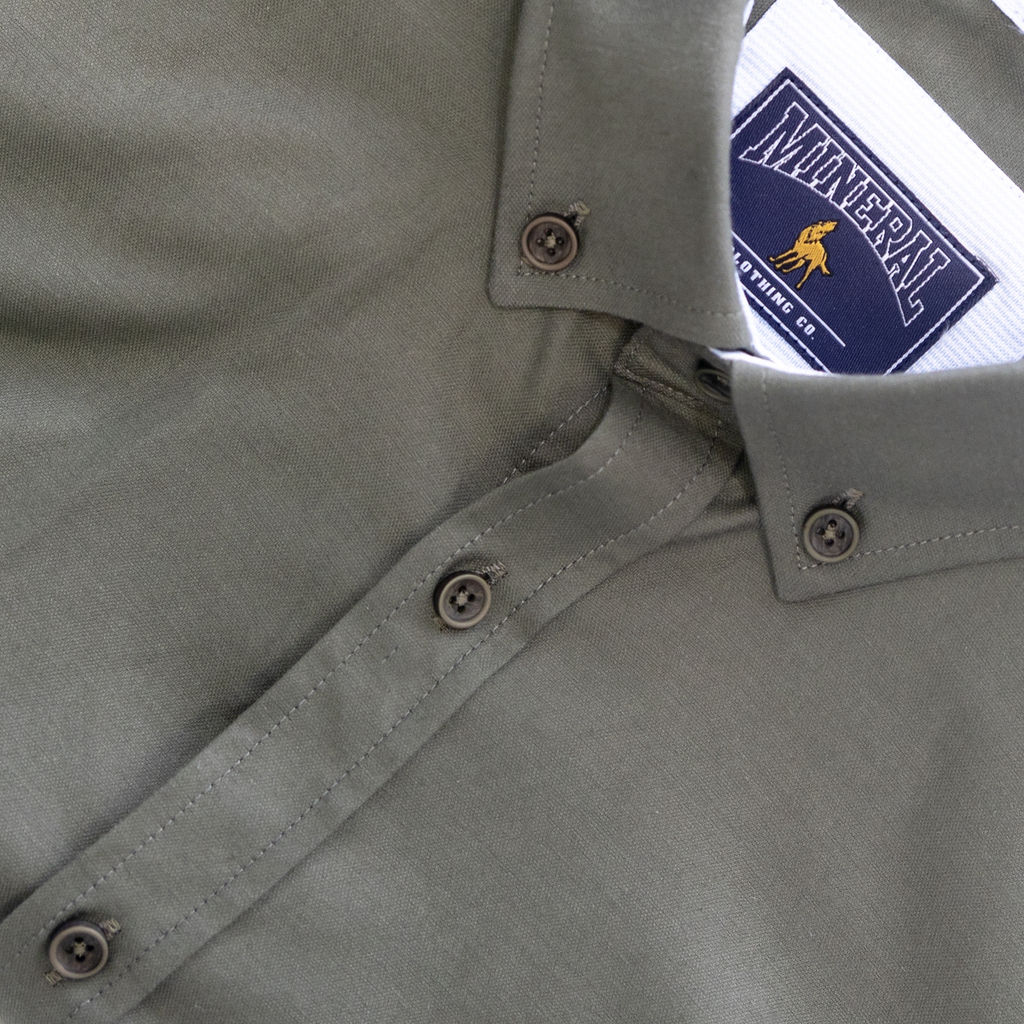Designed in Ireland, and made in a rich green tone, this shirt features a refined button-down collar and is finished with distinctive detailing that sets it apart. The signature Mineral ‘M’ is embroidered on the chest, adding a touch of branding, while green tonal buttons create a clean, sharp look.
